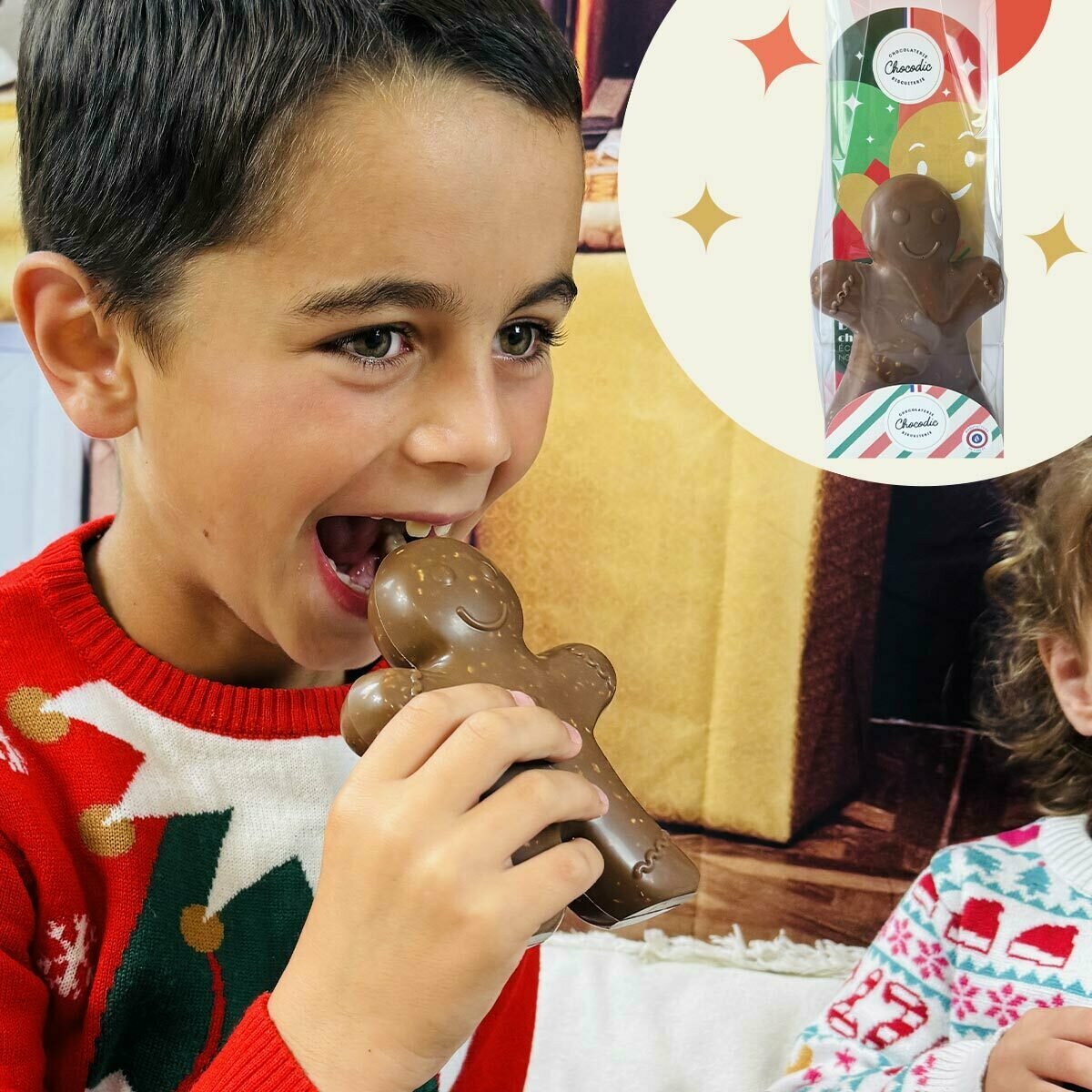 🎄Découvrez la Magie de Noël avec notre Bonhomme de Noël en Chocolat aux Éclats de Noisettes