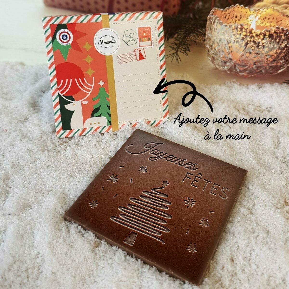La Prête à croquer de Noël est une alternative idéale aux cartes de vœux classiques ou aux friandises industrielles. Son format compact permet de l’offrir en toutes circonstances : glissée dans une chaussette de Noël, sur une assiette de fête, en cadeau de table ou en petit présent pour les enseignants, les voisins ou les amis. Et sa gravure spéciale "Joyeuses Fêtes" ou "Merry Christmas" la rend encore plus festive et personnelle.