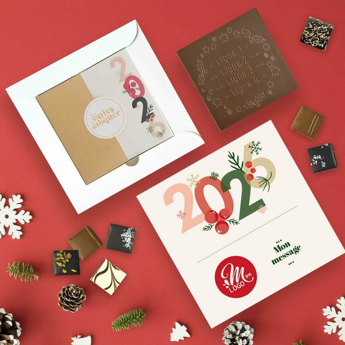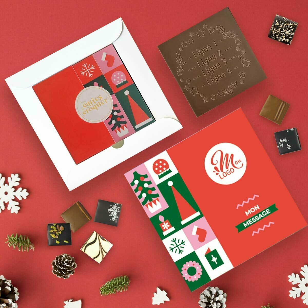 Composition : Coffret Duo Carte à Croquer Couronne de fête - Collection Noël Entreprise