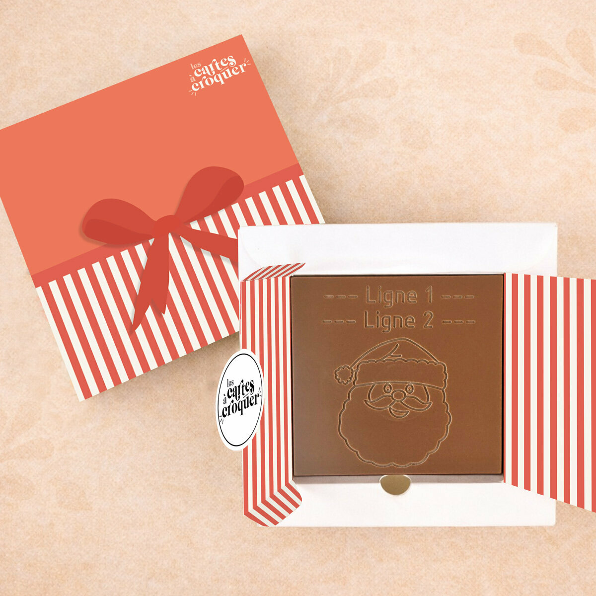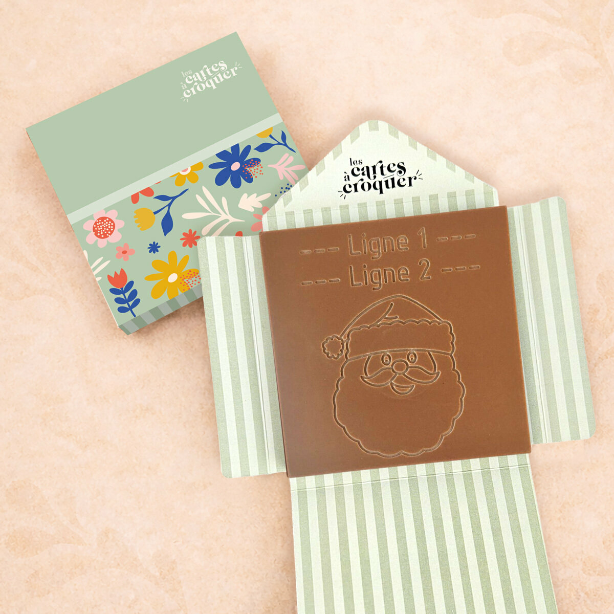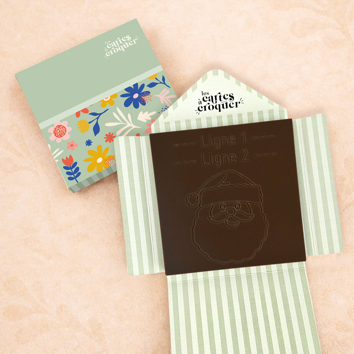 La Carte à Croquer – Modèle Papa Noël est le cadeau parfait pour célébrer les fêtes de fin d’année avec gourmandise et originalité. Son design festif, illustré par la tête du Père Noël gravée, apporte une touche joyeuse et chaleureuse à vos vœux. Disponible en chocolat noir, lait ou lait-caramel, cette carte séduit autant par son apparence que par sa saveur fondante et raffinée. Offrir cette carte, c’est transformer un simple chocolat en un souvenir gourmand et mémorable pour petits et grands, alliant plaisir et émotion.